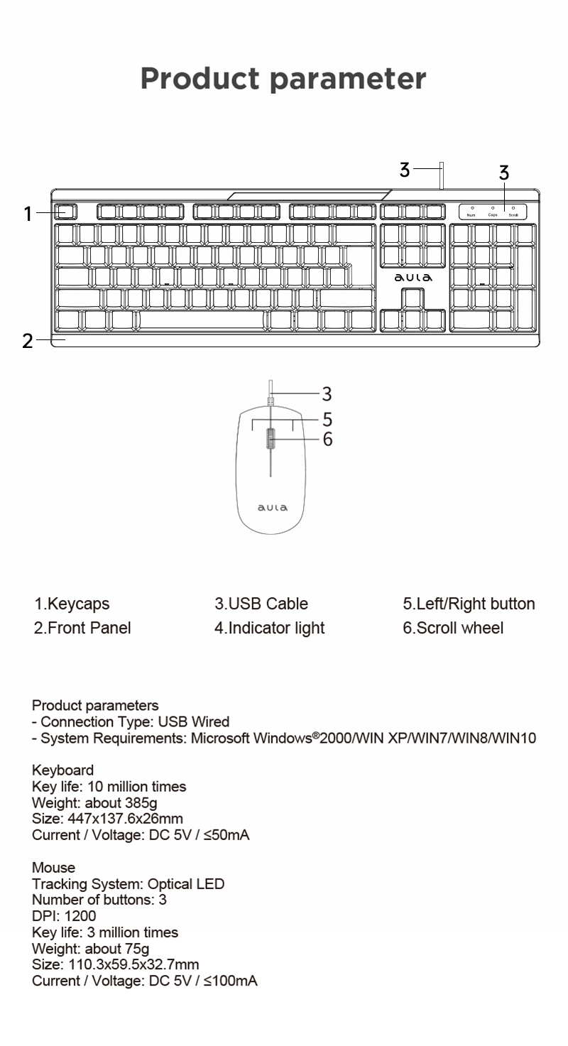 • AULA AC101 USB Keyboard and Mouse Combo gives you everyday comfort, responsiveness, and reliable performance in a simple plug-and-play package — perfect for general computing without extra complexity or cost.
